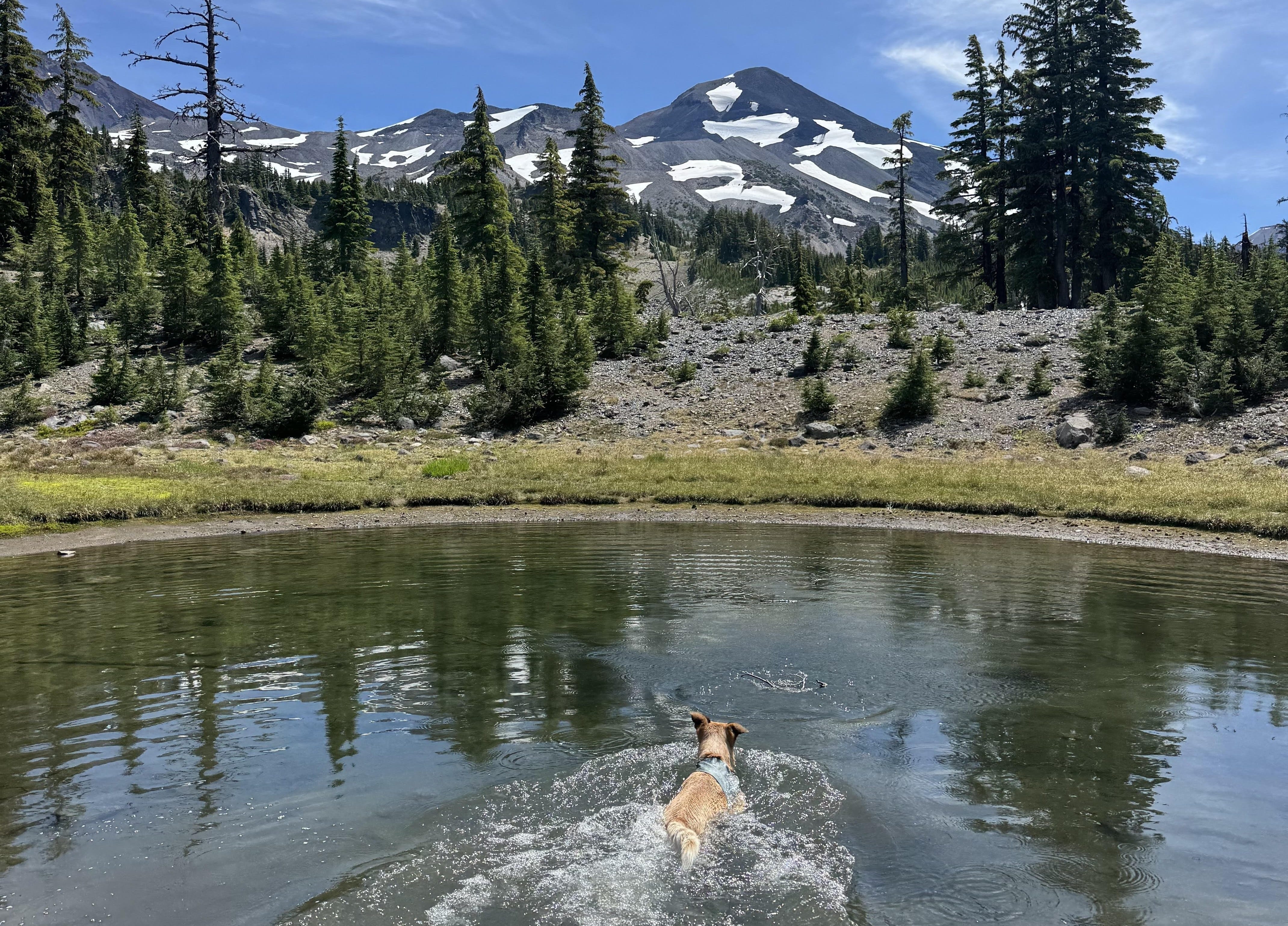 I don’t have a cast or plastic bag this go-around, but the pool is still painted grey. As I got in that first day, I pictured Dilly anytime he earns himself a bath after rolling through an unidentifiable smelly object.